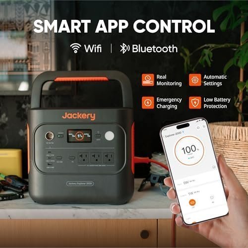 Durable for 10 Years: The Jackery Explorer 2000 v2 Solar Generator comes with a LiFePo4 battery that lasts up to 10 years, making this safe, compact power station a dependable long-term investment. Use it outdoors and indoors, risking no fumes and enjoying a safe, eco-friendly alternative to gas generators.